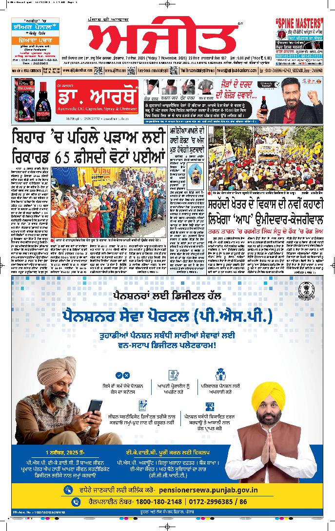 ਅਜੀਤ' ਖ਼ਬਰਾਂ, 6 ਅਕਤੂਬਰ 2025