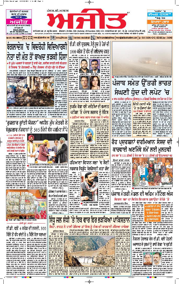 ਅਜੀਤ' ਖ਼ਬਰਾਂ, 19 ਦਸੰਬਰ 2025