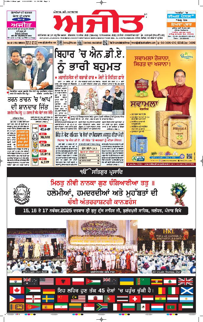 ਅਜੀਤ' ਖ਼ਬਰਾਂ, 14 ਨਵੰਬਰ 2025
