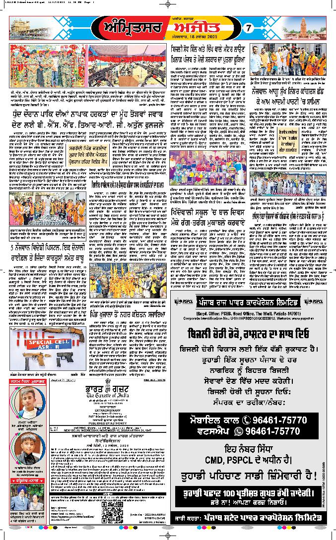 ਸੋਨਭੱਦਰ (ਉੱਤਰ ਪ੍ਰਦੇਸ਼) , 18 ਨਵੰਬਰ (ਏਐਨਆਈ): ਉੱਤਰ ਪ੍ਰਦੇਸ਼ ਦੇ ਸੋਨਭੱਦਰ ਵਿਚ ਪੱਥਰ ਦੀ ਖਾਨ ਢਹਿਣ ਤੋਂ ਬਾਅਦ ਫਸੇ ਵਿਅਕਤੀਆਂ ਨੂੰ ਲੱਭਣ ਅਤੇ ਬਚਾਉਣ ਲਈ ਬਚਾਅ ਕਾਰਜ ਪੂਰਾ ਹੋ ...