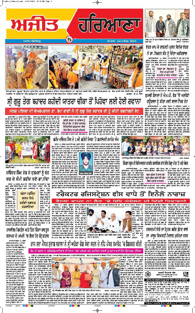 ਨਵੀਂ ਦਿੱਲੀ, 24 ਨਵੰਬਰ- ਉਪ ਰਾਸ਼ਟਰਪਤੀ ਸੀਪੀ ਰਾਧਾਕ੍ਰਿਸ਼ਨਨ ਨੇ ਗੁਰੂ ਤੇਗ ਬਹਾਦਰ ਜੀ ਨੂੰ ਸ਼ਰਧਾਂਜਲੀ ਭੇਟ ਕੀਤੀ...
