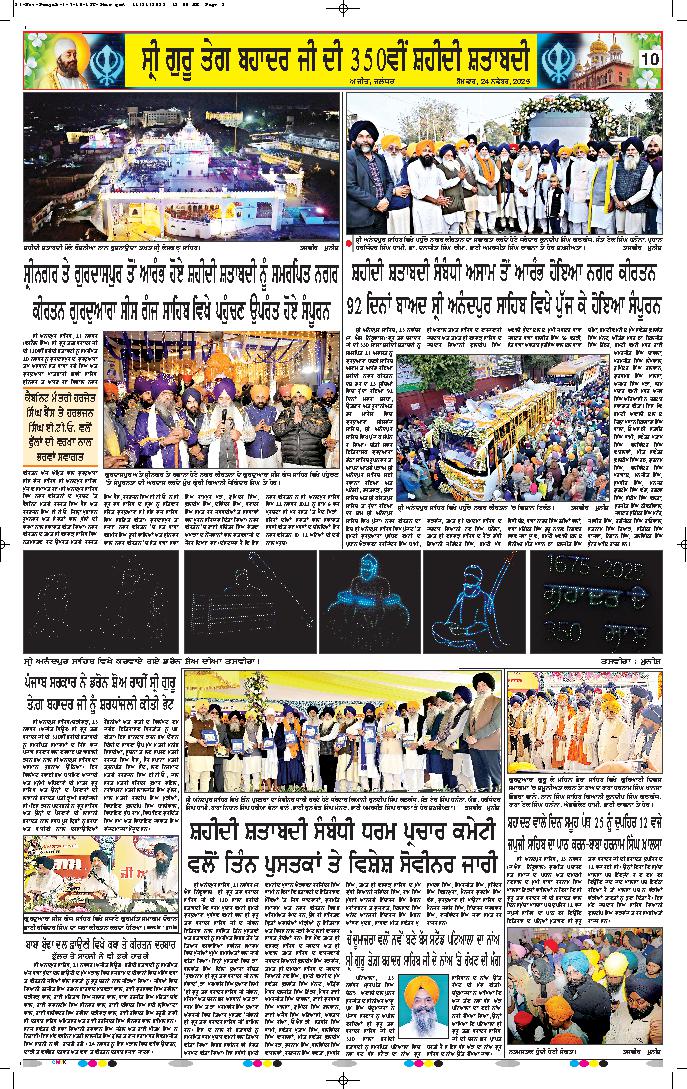 ਚੰਡੀਗੜ੍ਹ, 24 ਨਵੰਬਰ (ਵਿਕਰਮਜੀਤ ਸਿੰਘ ਮਾਨ) - ਕੈਬਨਟ ਮੰਤਰੀ ਅਮਨ ਅਰੋੜਾ, ਭਾਜਪਾ ਵਿਧਾਇਕ ਅਸ਼ਵਨੀ ਸ਼ਰਮਾ ਅਤੇ ਵਿਰੋਧੀ ਧਿਰ ਦੇ ਨੇਤਾ ਪ੍ਰਤਾਪ ਸਿੰਘ ਬਾਜਵਾ ਨੇ ਸਦਨ ਚ ਸ੍ਰੀ ਗੁਰੂ ਤੇਗ ਬਹਾਦੁਰ ਜੀ...