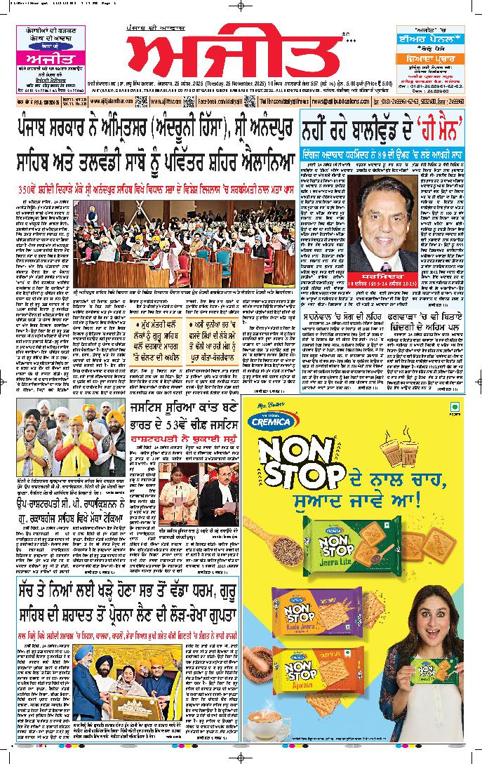 ਅਜੀਤ' ਖ਼ਬਰਾਂ, 24 ਨਵੰਬਰ 2025