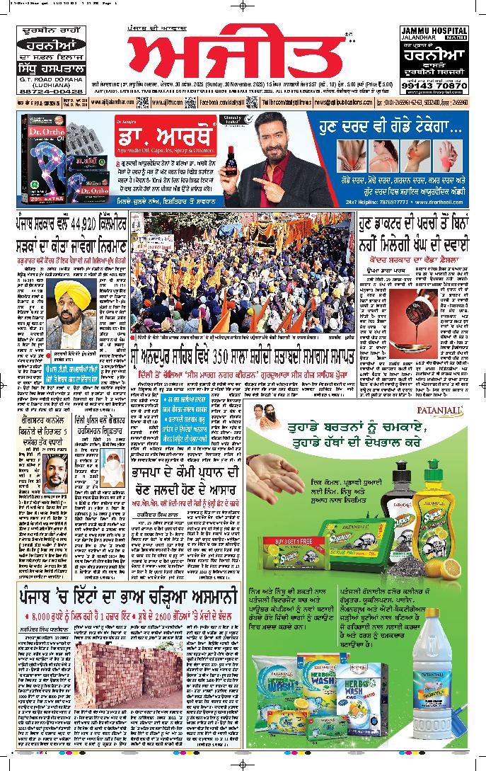 ਅਜੀਤ' ਖ਼ਬਰਾਂ, 29 ਨਵੰਬਰ 2025