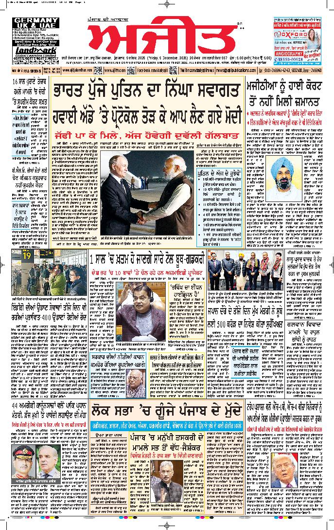ਅਜੀਤ' ਖ਼ਬਰਾਂ, 04 ਦਸੰਬਰ 2025