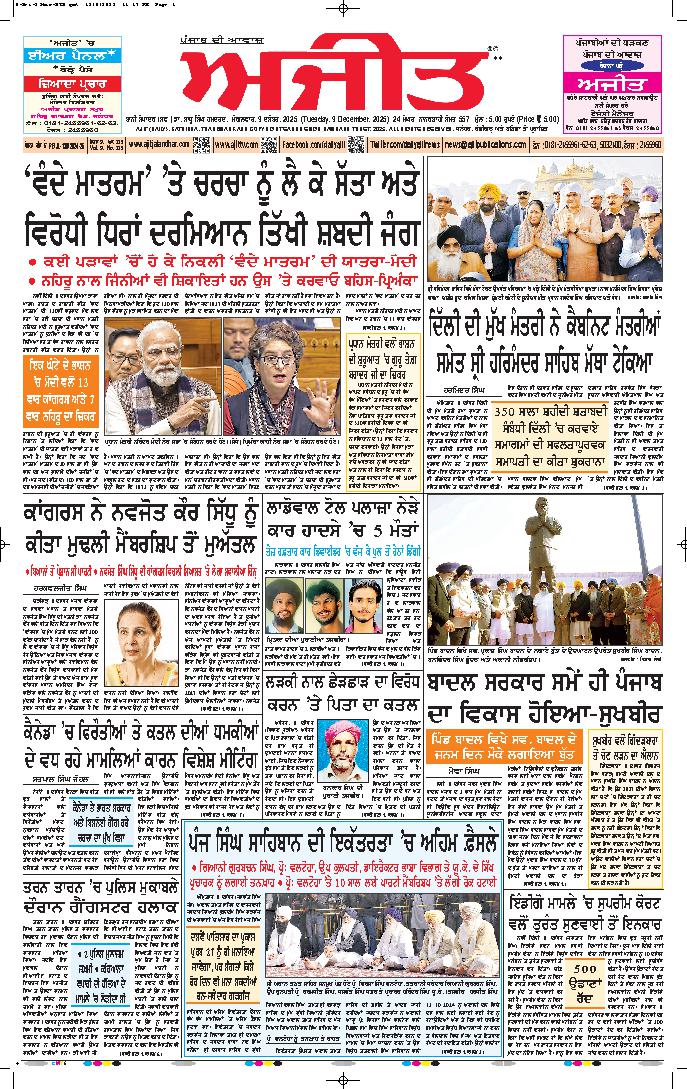 ਅਜੀਤ' ਖ਼ਬਰਾਂ, 09 ਦਸੰਬਰ 2025