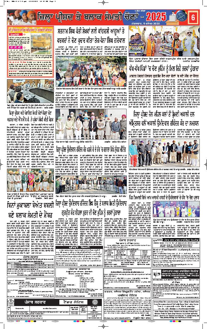 ਚੰਡੀਗੜ੍ਹ, 11 ਦਸੰਬਰ- ਸ਼੍ਰੋਮਣੀ ਅਕਾਲੀ ਦਲ ਨੇ ਰਾਜ ਚੋਣ ਕਮਿਸ਼ਨ ਨੂੰ ਇਕ ਪੱਤਰ ਲਿਖ ਕੇ 14 ਦਸੰਬਰ ਨੂੰ ਹੋਣ ਵਾਲੀਆਂ ਜ਼ਿਲ੍ਹਾ ਪ੍ਰੀਸ਼ਦ ਅਤੇ ਪੰਚਾਇਤ ਸੰਮਤੀ ਚੋਣਾਾਂ ਦੌਰਾਨ ਵੋਟਾਂ ਪਾਉਣ ਲਈ...