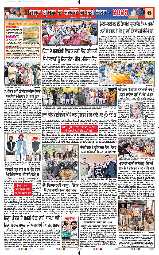ਸੰਗਰੂਰ, 13 ਦਸੰਬਰ (ਧੀਰਜ ਪਿਸੋਰੀਆ) - ਪੰਜਾਬ ਰਾਜ ਚੋਣ ਕਮਿਸ਼ਨ ਦੇ ਦਿਸ਼ਾ ਨਿਰਦੇਸ਼ਾਂ ਹੇਠ 14 ਦਸੰਬਰ ਨੂੰ ਜ਼ਿਲ੍ਹਾ ਪ੍ਰੀਸ਼ਦ ਦੇ 18 ਜ਼ੋਨਾਂ ਅਤੇ 10 ਪੰਚਾਇਤ ਸੰਮਤੀਆਂ ਦੇ 162 ਜ਼ੋਨਾਂ ਦੀਆਂ ਹੋਣ ਵਾਲੀਆਂ ਚੋਣਾਂ ਨੂੰ ਸੁਚਾਰੂ...