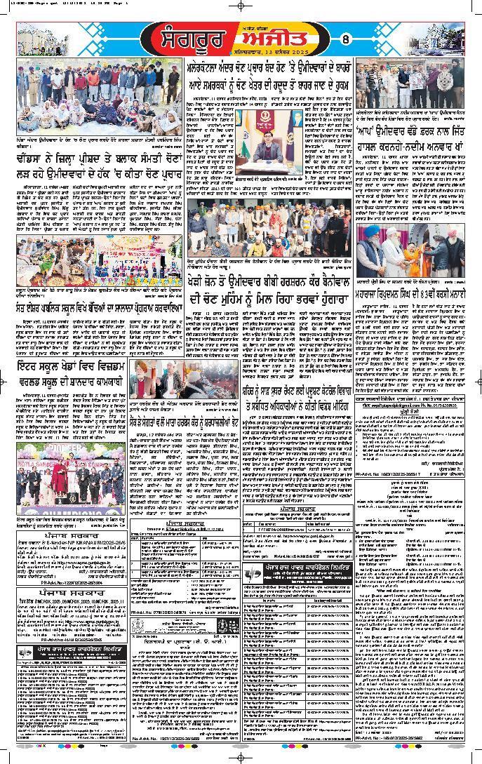 ਜਲੰਧਰ, 14 ਦਸੰਬਰ- ਚੋਣਾਂ ਦੇ ਸੁਚਾਰੂ, ਆਜ਼ਾਦ, ਨਿਰਪੱਖ ਅਤੇ ਪਾਰਦਰਸ਼ੀ ਸੰਚਾਲਨ ਤੋਂ ਬਾਅਦ, ਜ਼ਿਲ੍ਹਾ ਪ੍ਰਸ਼ਾਸਨ ਜਲੰਧਰ ਵਲੋਂ ਕੀਤੇ ਗਏ ਵਿਸਤ੍ਰਿਤ ਪ੍ਰਬੰਧਾਂ ਵਿਚਕਾਰ ਹੋਈਆਂ ਜ਼ਿਲ੍ਹਾ ਪ੍ਰੀਸ਼ਦ ਅਤੇ ਪੰਚਾਇਤ ...