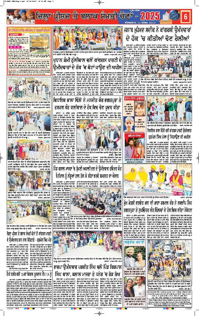 ਜਲੰਧਰ, 14 ਦਸੰਬਰ- ਚੋਣਾਂ ਦੇ ਸੁਚਾਰੂ, ਆਜ਼ਾਦ, ਨਿਰਪੱਖ ਅਤੇ ਪਾਰਦਰਸ਼ੀ ਸੰਚਾਲਨ ਤੋਂ ਬਾਅਦ, ਜ਼ਿਲ੍ਹਾ ਪ੍ਰਸ਼ਾਸਨ ਜਲੰਧਰ ਵਲੋਂ ਕੀਤੇ ਗਏ ਵਿਸਤ੍ਰਿਤ ਪ੍ਰਬੰਧਾਂ ਵਿਚਕਾਰ ਹੋਈਆਂ ਜ਼ਿਲ੍ਹਾ ਪ੍ਰੀਸ਼ਦ ਅਤੇ ਪੰਚਾਇਤ ...