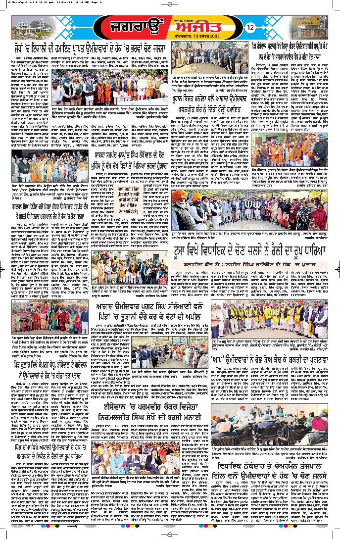 ਜਲੰਧਰ, 14 ਦਸੰਬਰ- ਚੋਣਾਂ ਦੇ ਸੁਚਾਰੂ, ਆਜ਼ਾਦ, ਨਿਰਪੱਖ ਅਤੇ ਪਾਰਦਰਸ਼ੀ ਸੰਚਾਲਨ ਤੋਂ ਬਾਅਦ, ਜ਼ਿਲ੍ਹਾ ਪ੍ਰਸ਼ਾਸਨ ਜਲੰਧਰ ਵਲੋਂ ਕੀਤੇ ਗਏ ਵਿਸਤ੍ਰਿਤ ਪ੍ਰਬੰਧਾਂ ਵਿਚਕਾਰ ਹੋਈਆਂ ਜ਼ਿਲ੍ਹਾ ਪ੍ਰੀਸ਼ਦ ਅਤੇ ਪੰਚਾਇਤ ...