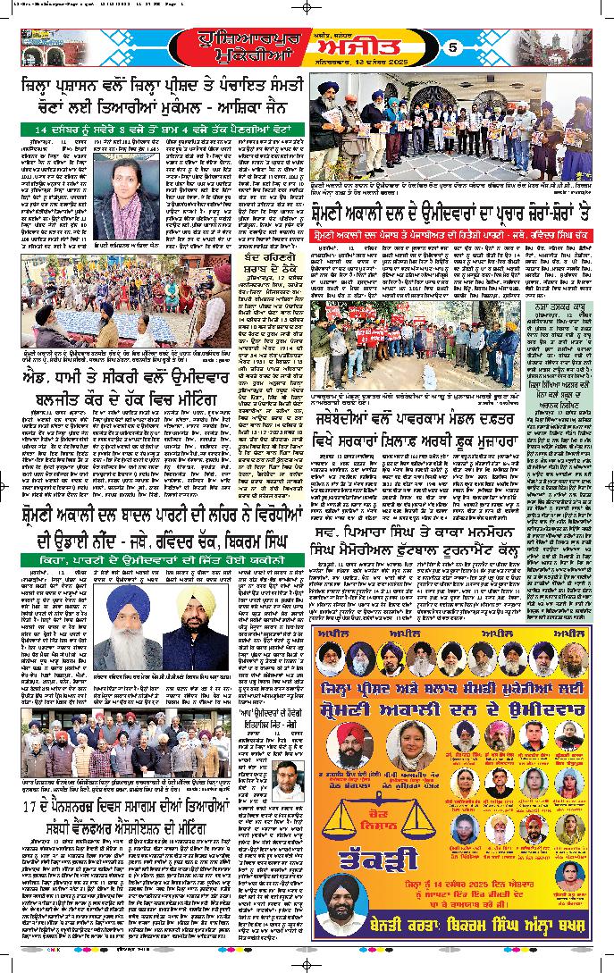 ਜਲੰਧਰ, 14 ਦਸੰਬਰ- ਚੋਣਾਂ ਦੇ ਸੁਚਾਰੂ, ਆਜ਼ਾਦ, ਨਿਰਪੱਖ ਅਤੇ ਪਾਰਦਰਸ਼ੀ ਸੰਚਾਲਨ ਤੋਂ ਬਾਅਦ, ਜ਼ਿਲ੍ਹਾ ਪ੍ਰਸ਼ਾਸਨ ਜਲੰਧਰ ਵਲੋਂ ਕੀਤੇ ਗਏ ਵਿਸਤ੍ਰਿਤ ਪ੍ਰਬੰਧਾਂ ਵਿਚਕਾਰ ਹੋਈਆਂ ਜ਼ਿਲ੍ਹਾ ਪ੍ਰੀਸ਼ਦ ਅਤੇ ਪੰਚਾਇਤ ...