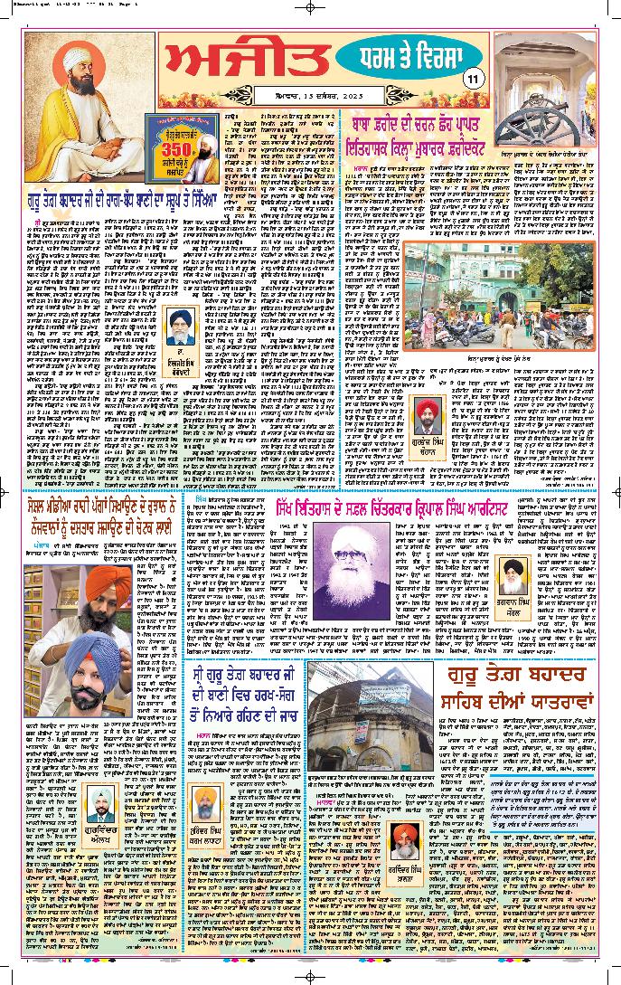 ਅਜੀਤ' ਖ਼ਬਰਾਂ, 15 ਦਸੰਬਰ 2025