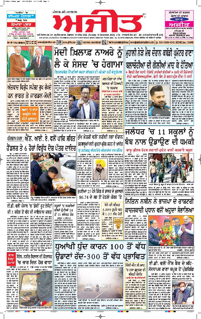 ਅਜੀਤ' ਖ਼ਬਰਾਂ, 15 ਦਸੰਬਰ 2025