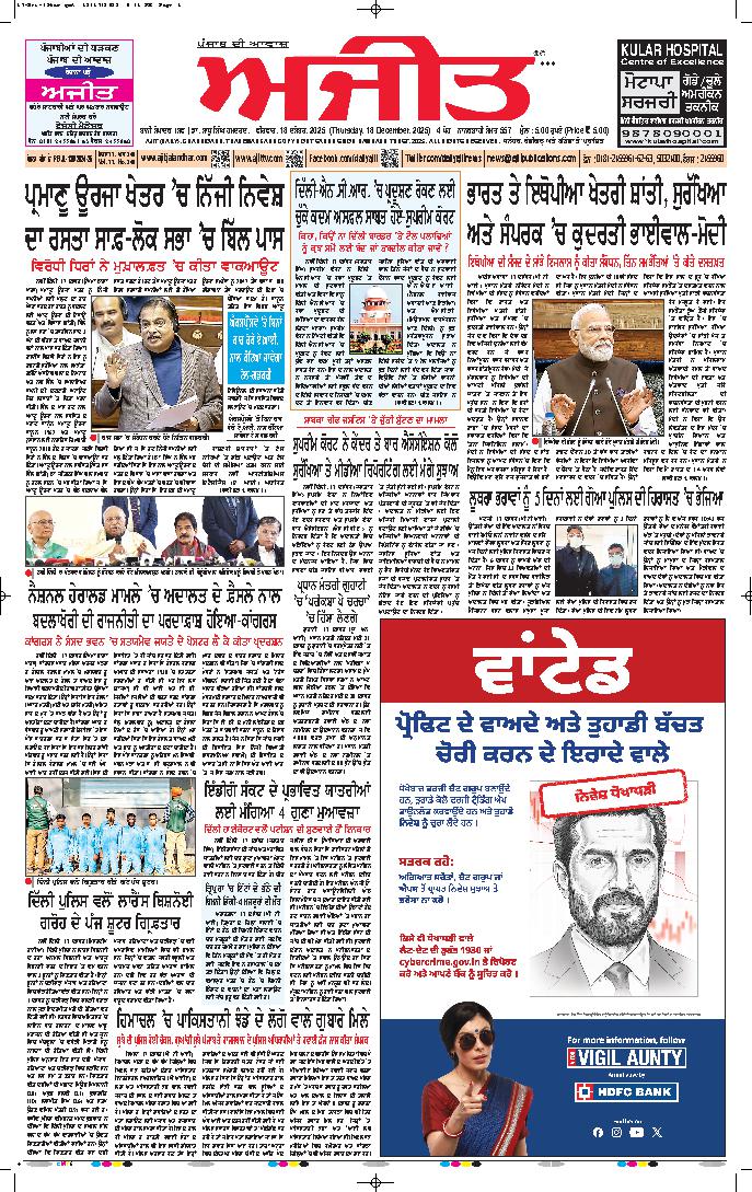 ਅਜੀਤ' ਖ਼ਬਰਾਂ, 17 ਦਸੰਬਰ 2025