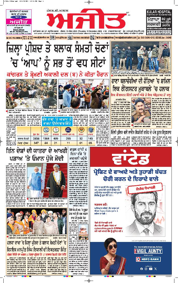 ਅਜੀਤ' ਖ਼ਬਰਾਂ, 17 ਦਸੰਬਰ 2025