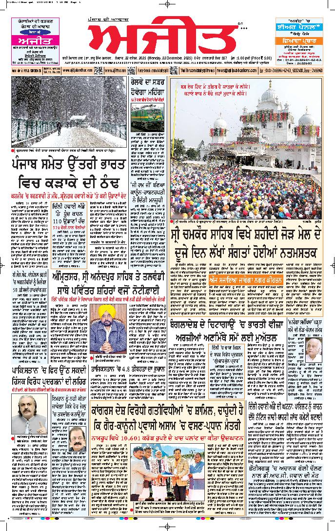 ਅਜੀਤ' ਖ਼ਬਰਾਂ, 21 ਦਸੰਬਰ 2025