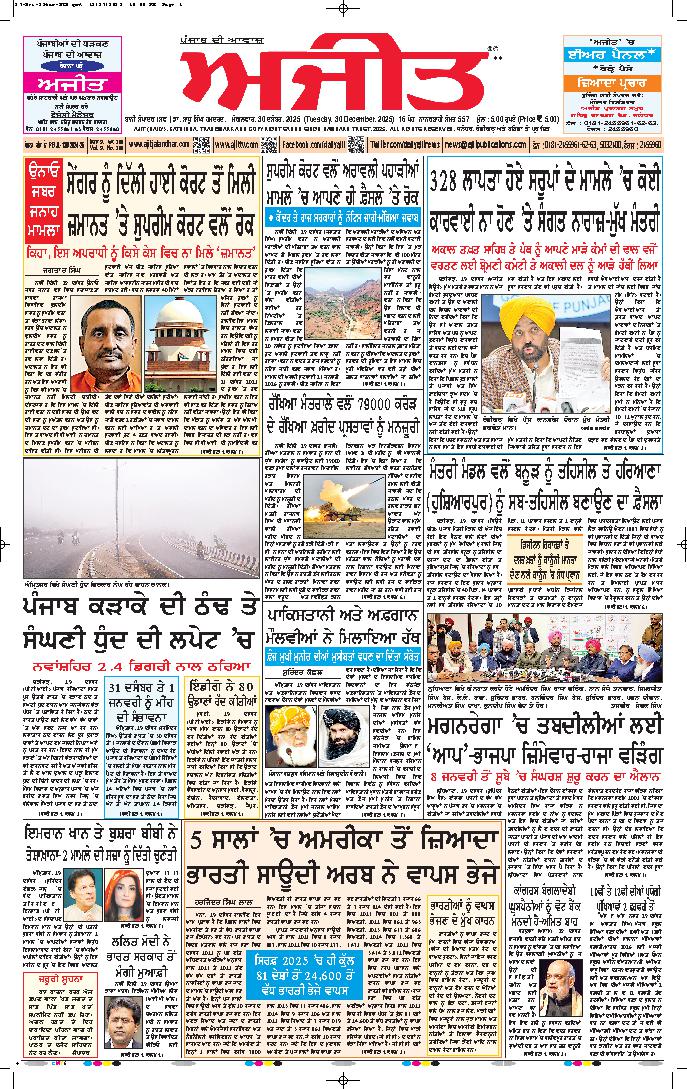 ਅਜੀਤ' ਖ਼ਬਰਾਂ, 29 ਦਸੰਬਰ 2025