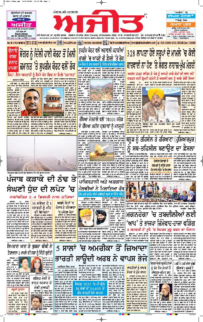 ਅਜੀਤ' ਖ਼ਬਰਾਂ, 29 ਦਸੰਬਰ 2025