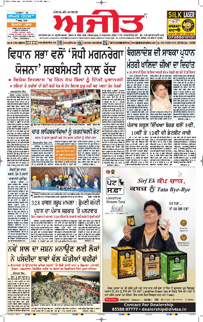ਅਜੀਤ' ਖ਼ਬਰਾਂ, 29 ਦਸੰਬਰ 2025