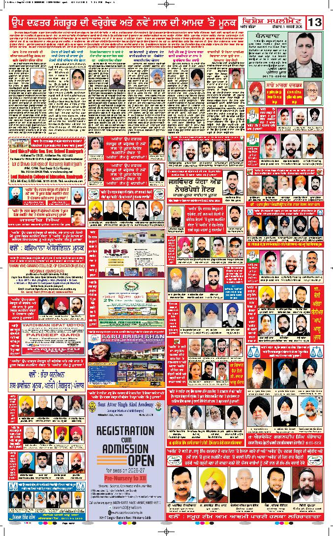 ਅੰਮ੍ਰਿਤਸਰ, 1 ਜਨਵਰੀ (ਜਸਵੰਤ ਸਿੰਘ ਜੱਸ)- ਨਵੇਂ ਸਾਲ 2026 ਦੀ ਆਮਦ ’ਤੇ ਦੇਸ਼ ਵਿਦੇਸ਼ ਤੋਂ ਲੱਖਾਂ ਦੀ ਗਿਣਤੀ ਵਿਚ ਸੰਗਤਾਂ ਸ੍ਰੀ ਹਰਿਮੰਦਰ ਸਾਹਿਬ ਵਿਖੇ ਨਤਮਸਤਕ ਹੋਣ ਪੁੱਜੀਆਂ ਅਤੇ ਨਵੇਂ....