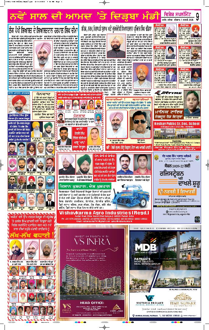 ਅੰਮ੍ਰਿਤਸਰ, 1 ਜਨਵਰੀ (ਜਸਵੰਤ ਸਿੰਘ ਜੱਸ)- ਨਵੇਂ ਸਾਲ 2026 ਦੀ ਆਮਦ ’ਤੇ ਦੇਸ਼ ਵਿਦੇਸ਼ ਤੋਂ ਲੱਖਾਂ ਦੀ ਗਿਣਤੀ ਵਿਚ ਸੰਗਤਾਂ ਸ੍ਰੀ ਹਰਿਮੰਦਰ ਸਾਹਿਬ ਵਿਖੇ ਨਤਮਸਤਕ ਹੋਣ ਪੁੱਜੀਆਂ ਅਤੇ ਨਵੇਂ....