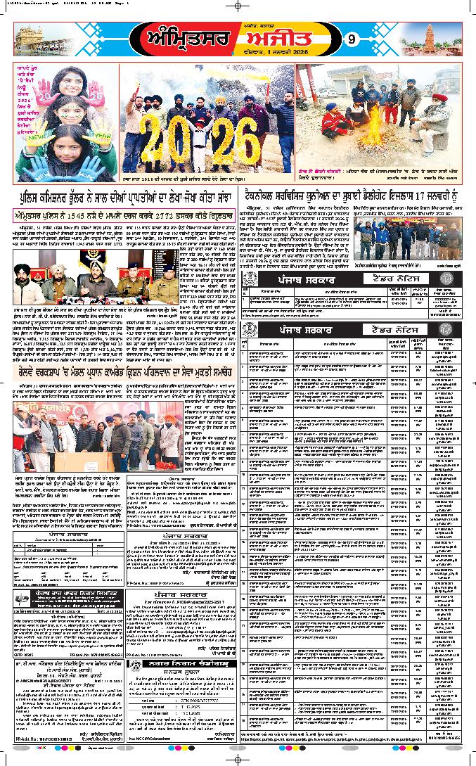 ਅੰਮ੍ਰਿਤਸਰ, 1 ਜਨਵਰੀ (ਜਸਵੰਤ ਸਿੰਘ ਜੱਸ)- ਨਵੇਂ ਸਾਲ 2026 ਦੀ ਆਮਦ ’ਤੇ ਦੇਸ਼ ਵਿਦੇਸ਼ ਤੋਂ ਲੱਖਾਂ ਦੀ ਗਿਣਤੀ ਵਿਚ ਸੰਗਤਾਂ ਸ੍ਰੀ ਹਰਿਮੰਦਰ ਸਾਹਿਬ ਵਿਖੇ ਨਤਮਸਤਕ ਹੋਣ ਪੁੱਜੀਆਂ ਅਤੇ ਨਵੇਂ....