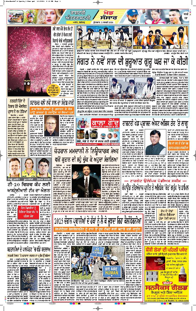 ਨਿਊ ਸਾਊਥ ਵੇਲਜ਼ [ਆਸਟ੍ਰੇਲੀਆ], 1 ਜਨਵਰੀ (ਏਐਨਆਈ): ਆਸਟ੍ਰੇਲੀਆਈ ਪ੍ਰਧਾਨ ਮੰਤਰੀ ਐਂਥਨੀ ਅਲਬਾਨੀਜ਼ ਨੇ ਆਪਣੇ ਸਾਲਾਨਾ ਨਵੇਂ ਸਾਲ ਦੇ ਸਵਾਗਤ ਲਈ ਕਿਰਿਬਿਲੀ ਹਾਊਸ ਵਿਖੇ ਆਖਰੀ ਐਸ਼ੇਜ਼ ਟੈਸਟ ਤੋਂ ਪਹਿਲਾਂ ...