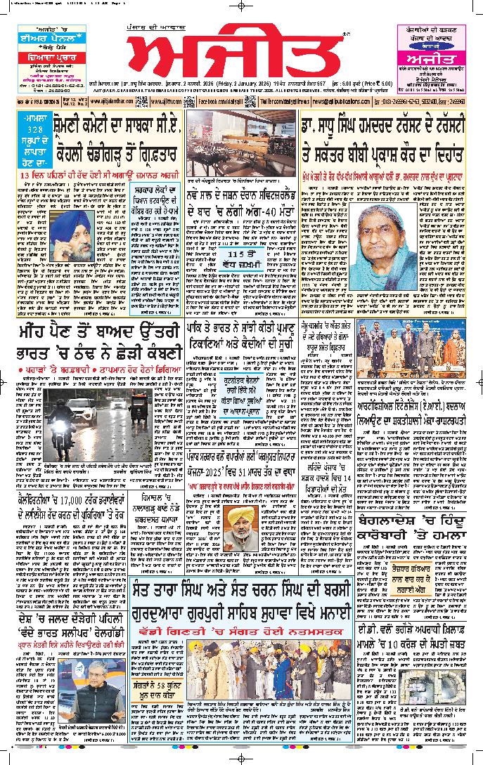 ਅਜੀਤ' ਖ਼ਬਰਾਂ, 01 ਜਨਵਰੀ 2025