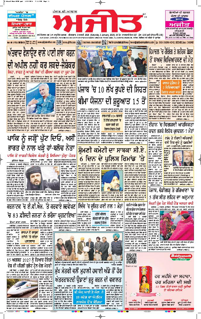 ਅਜੀਤ' ਖ਼ਬਰਾਂ, 02 ਜਨਵਰੀ 2025