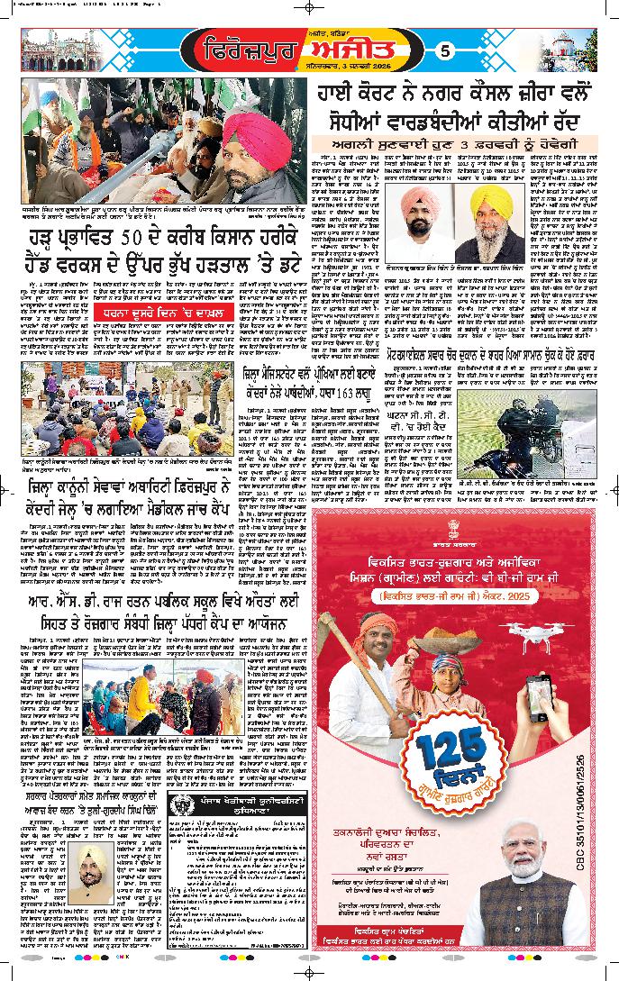 ਜਲੰਧਰ , 2 ਜਨਵਰੀ - ਭਾਜਪਾ ਦੇ ਸੂਬਾਈ ਉਪ ਪ੍ਰਧਾਨ ਰਾਜੇਸ਼ ਬਾਘਾ ਨੇ ਜਲੰਧਰ ਦੇ ਪ੍ਰੈੱਸ ਕਲੱਬ ਵਿਖੇ ਮਨਰੇਗਾ ਦੇ ਮਹੱਤਵਪੂਰਨ ਵਿਸ਼ੇ 'ਤੇ ਪ੍ਰੈੱਸ ਕਾਨਫਰੰਸ ਨੂੰ ਸੰਬੋਧਨ ਕਰਦਿਆਂ ਕਿਹਾ ਕਿ ਵਿਕਾਸ ਭਾਰਤ ਰੁਜ਼ਗਾਰ ਏਵਮ ...