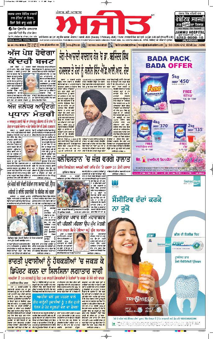 ਅਜੀਤ' ਖ਼ਬਰਾਂ, 31 ਜਨਵਰੀ 2026