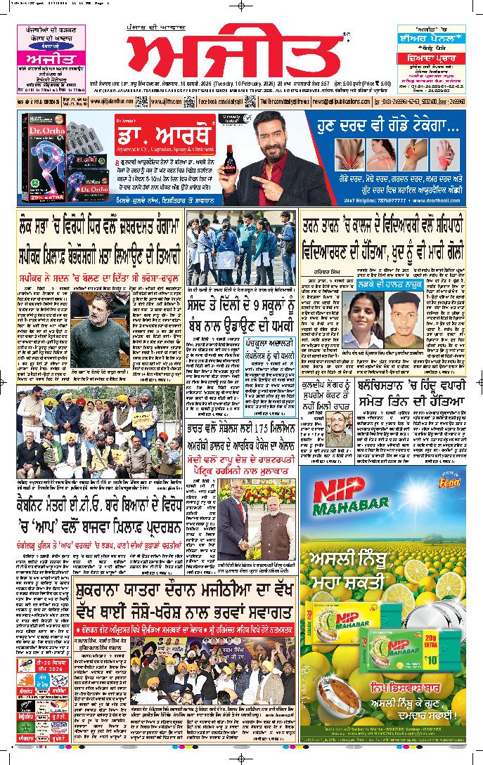 ਅਜੀਤ' ਖ਼ਬਰਾਂ, 9 ਫਰਵਰੀ 2026