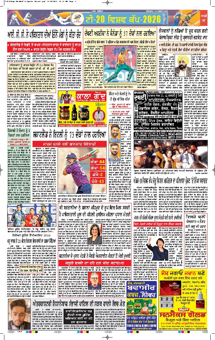 ਟੀ-20 ਵਿਸ਼ਵ ਕੱਪ 2026=ਸਾਊਥ ਅਫਰੀਕਾ ਦੇ ਕੈਨੇਡਾ ਨੂੰ ਦਿੱਤਾ 214 ਦੌੜਾਂ ਦਾ ਟੀਚਾ