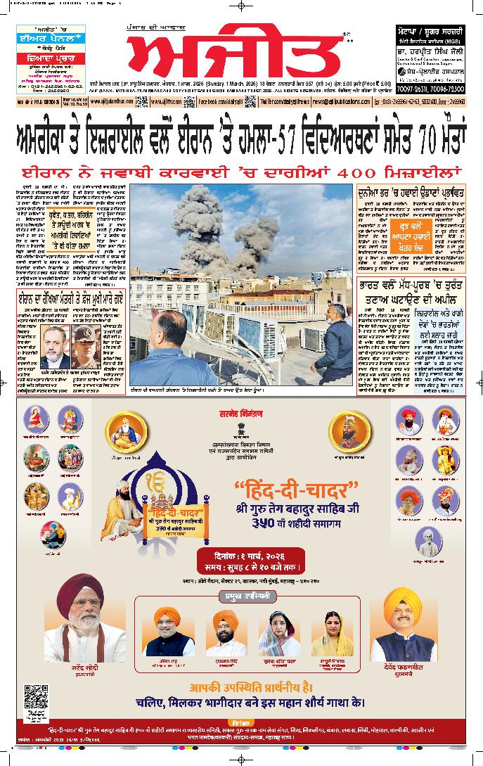 ਅਜੀਤ' ਖ਼ਬਰਾਂ, 28 ਫਰਵਰੀ 2026