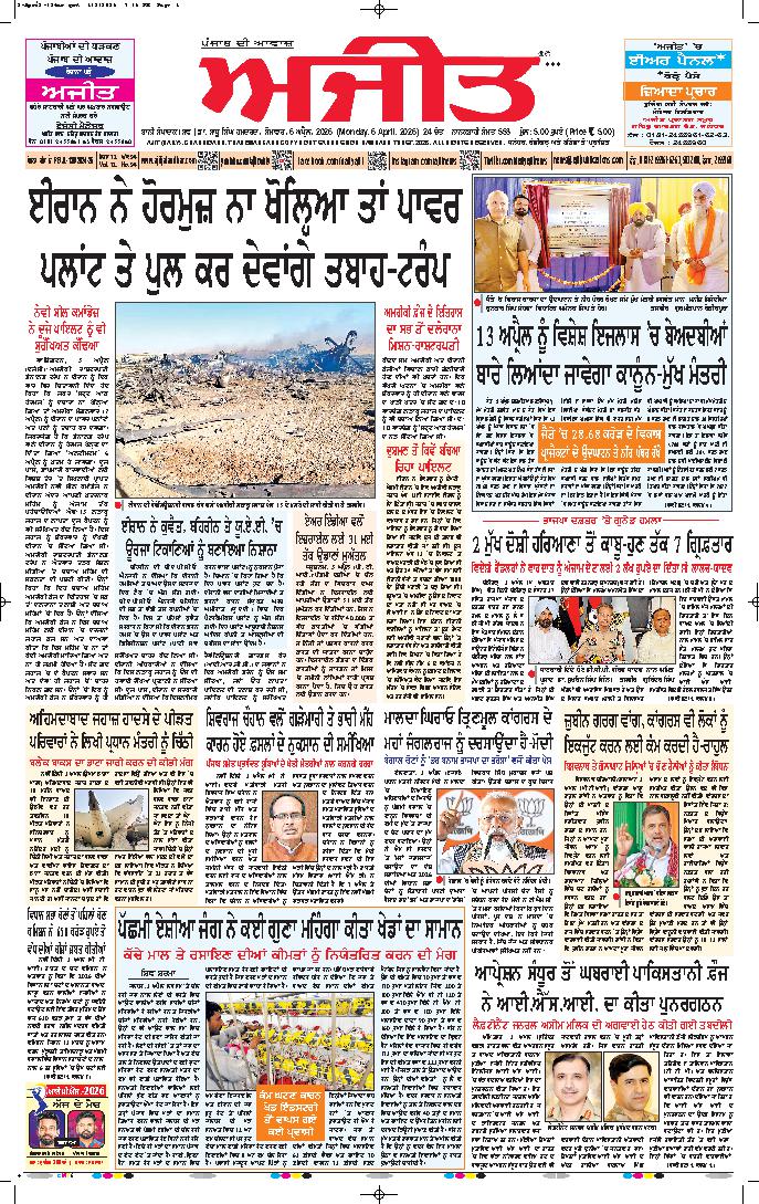 ਅਜੀਤ' ਖ਼ਬਰਾਂ, 5 ਅਪੑੈਲ 2026