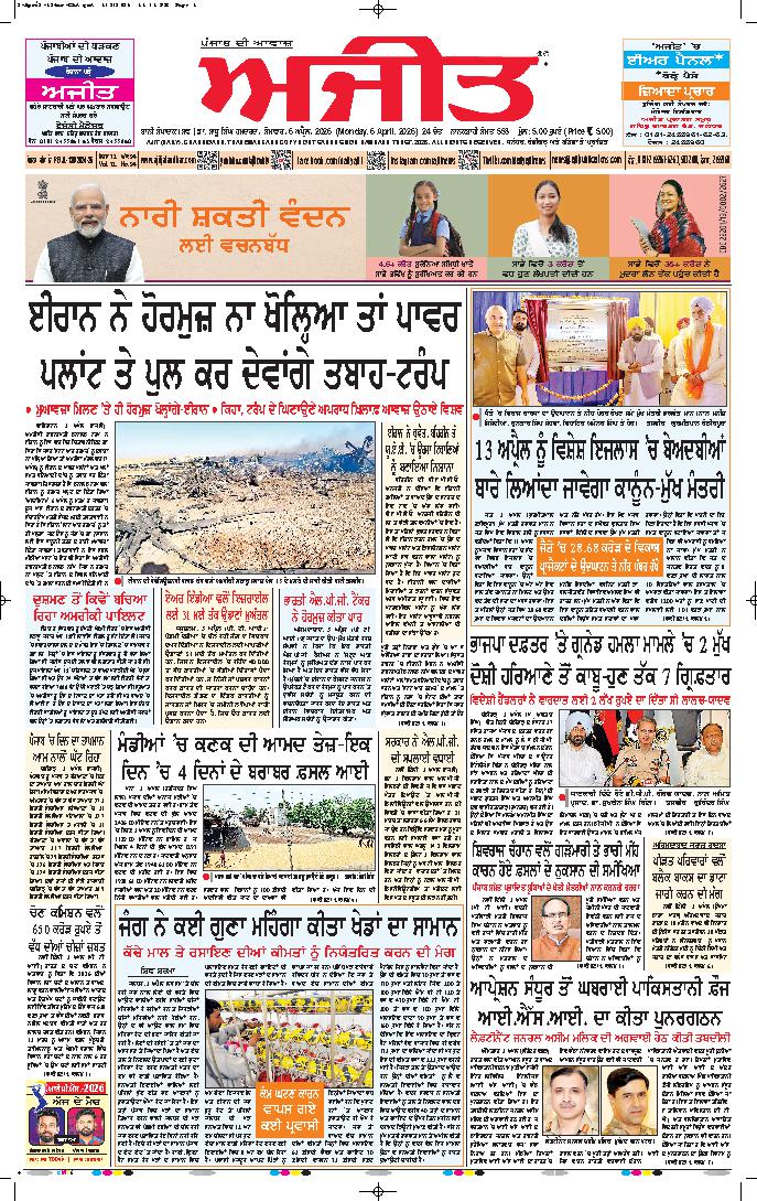 ਅਜੀਤ' ਖ਼ਬਰਾਂ, 5 ਅਪੑੈਲ 2026