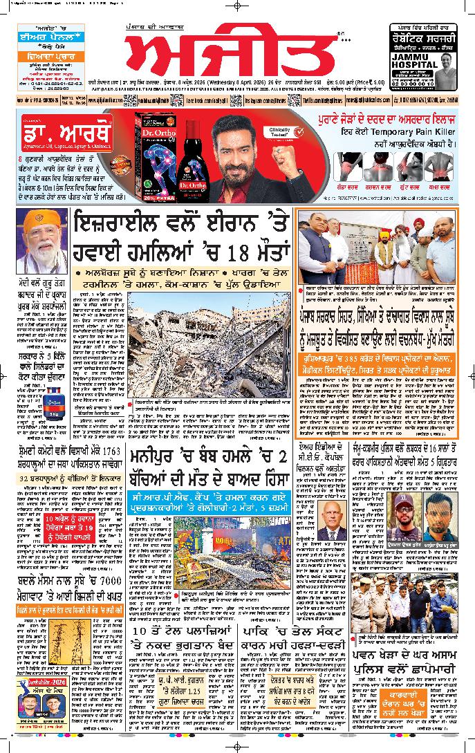 ਅਜੀਤ' ਖ਼ਬਰਾਂ, 7 ਅਪੑੈਲ 2026