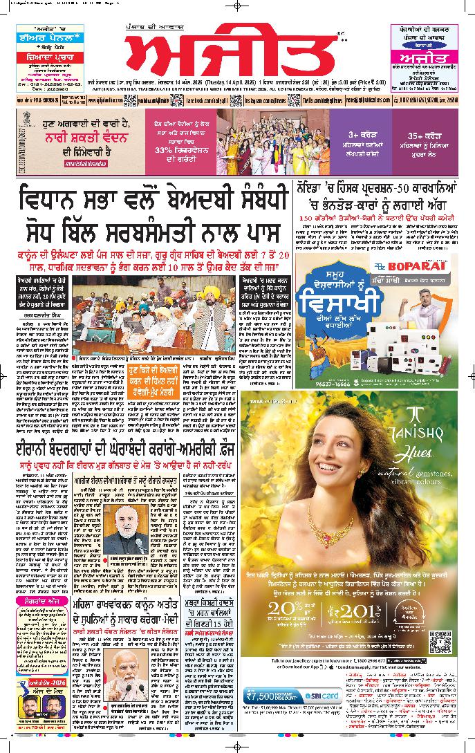 ਅਜੀਤ' ਖ਼ਬਰਾਂ, 13 ਅਪੑੈਲ 2026