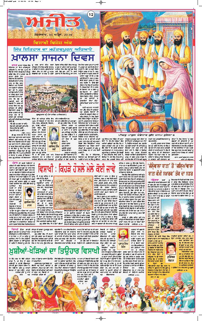 ਅਜੀਤ' ਖ਼ਬਰਾਂ, 13 ਅਪੑੈਲ 2026
