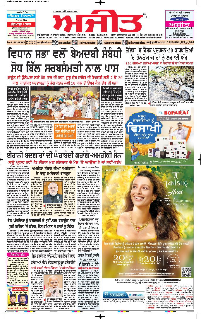 ਅਜੀਤ' ਖ਼ਬਰਾਂ, 13 ਅਪੑੈਲ 2026