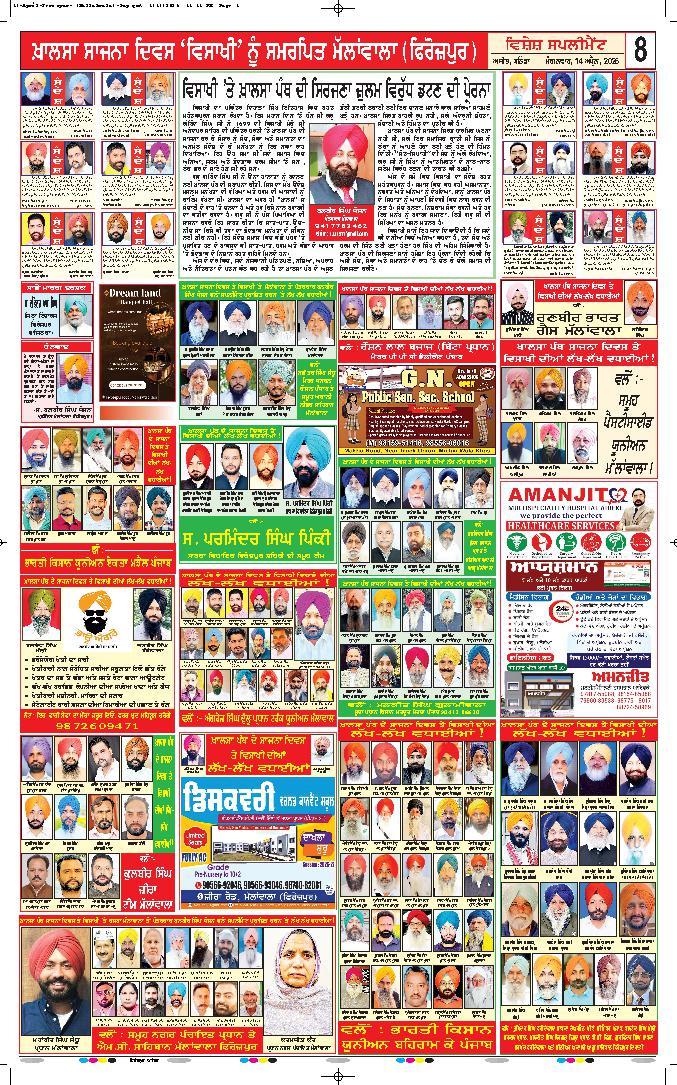 ਤਲਵੰਡੀ ਸਾਬੋ (ਬਠਿੰਡਾ), 14 ਅਪ੍ਰੈਲ (ਰਣਜੀਤ ਸਿੰਘ ਰਾਜੂ) ਖ਼ਾਲਸਾ ਸਾਜਨਾ ਦਿਵਸ ਵਿਸਾਖੀ ਮੌਕੇ ਸਿੱਖ ਕੌਮ ਦੇ ਚੌਥੇ ਤਖ਼ਤ, ਤਖ਼ਤ ਸ੍ਰੀ ਦਮਦਮਾ ਸਾਹਿਬ ਵਿਖੇ ਸਜਾਏ ਗਏ ਜੋੜ ਮੇਲ ਦੌਰਾਨ...