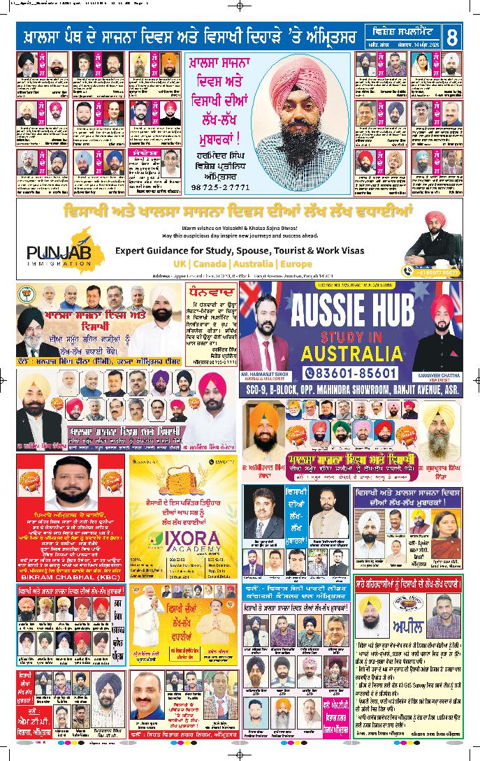 ਤਲਵੰਡੀ ਸਾਬੋ (ਬਠਿੰਡਾ), 14 ਅਪ੍ਰੈਲ (ਰਣਜੀਤ ਸਿੰਘ ਰਾਜੂ) ਖ਼ਾਲਸਾ ਸਾਜਨਾ ਦਿਵਸ ਵਿਸਾਖੀ ਮੌਕੇ ਸਿੱਖ ਕੌਮ ਦੇ ਚੌਥੇ ਤਖ਼ਤ, ਤਖ਼ਤ ਸ੍ਰੀ ਦਮਦਮਾ ਸਾਹਿਬ ਵਿਖੇ ਸਜਾਏ ਗਏ ਜੋੜ ਮੇਲ ਦੌਰਾਨ...