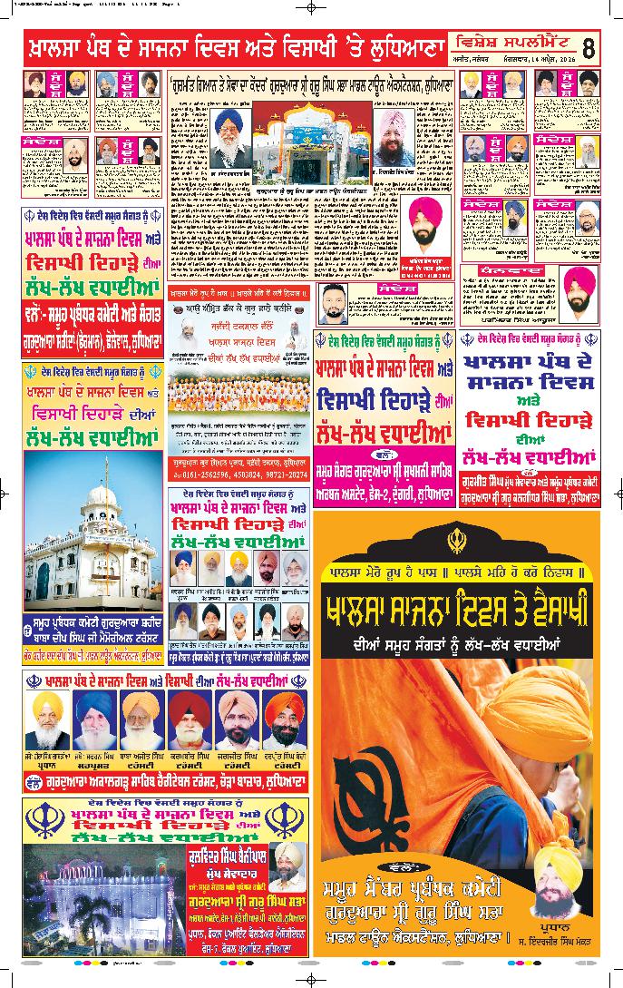ਤਲਵੰਡੀ ਸਾਬੋ (ਬਠਿੰਡਾ), 14 ਅਪ੍ਰੈਲ (ਰਣਜੀਤ ਸਿੰਘ ਰਾਜੂ) ਖ਼ਾਲਸਾ ਸਾਜਨਾ ਦਿਵਸ ਵਿਸਾਖੀ ਮੌਕੇ ਸਿੱਖ ਕੌਮ ਦੇ ਚੌਥੇ ਤਖ਼ਤ, ਤਖ਼ਤ ਸ੍ਰੀ ਦਮਦਮਾ ਸਾਹਿਬ ਵਿਖੇ ਸਜਾਏ ਗਏ ਜੋੜ ਮੇਲ ਦੌਰਾਨ...