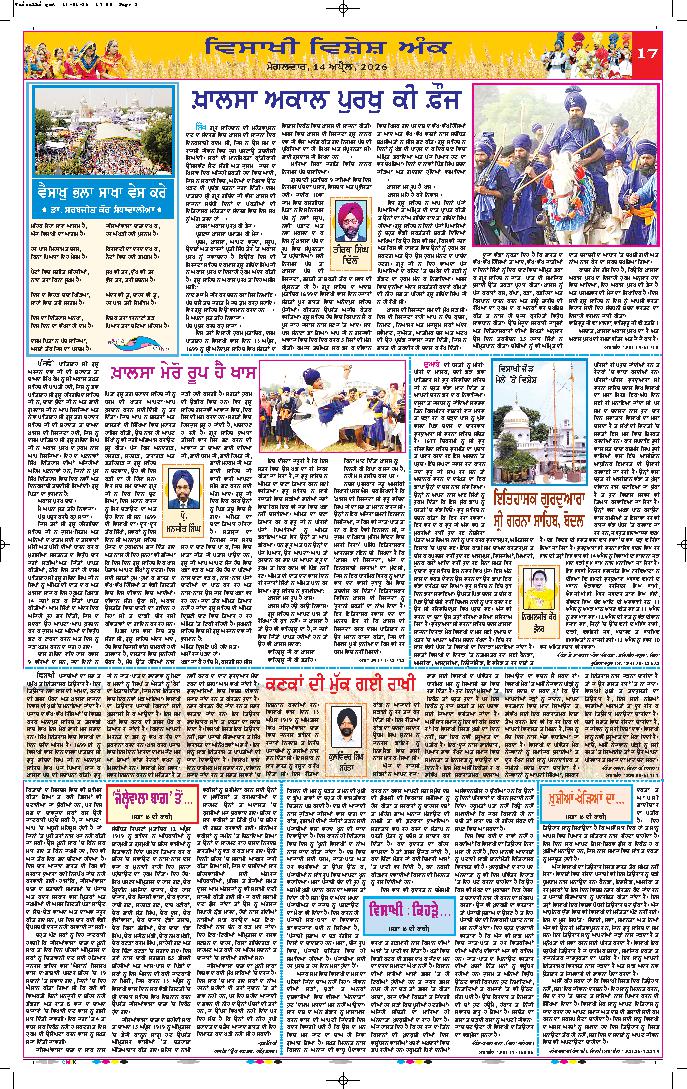 ਤਲਵੰਡੀ ਸਾਬੋ (ਬਠਿੰਡਾ), 14 ਅਪ੍ਰੈਲ (ਰਣਜੀਤ ਸਿੰਘ ਰਾਜੂ) ਖ਼ਾਲਸਾ ਸਾਜਨਾ ਦਿਵਸ ਵਿਸਾਖੀ ਮੌਕੇ ਸਿੱਖ ਕੌਮ ਦੇ ਚੌਥੇ ਤਖ਼ਤ, ਤਖ਼ਤ ਸ੍ਰੀ ਦਮਦਮਾ ਸਾਹਿਬ ਵਿਖੇ ਸਜਾਏ ਗਏ ਜੋੜ ਮੇਲ ਦੌਰਾਨ...